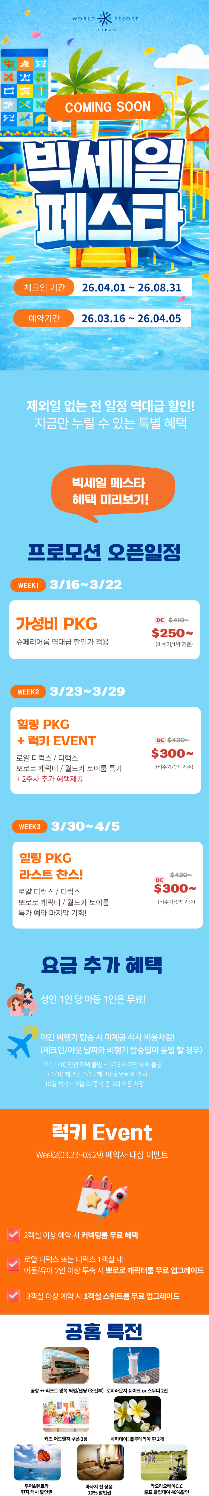 제외일 없는 전 일정 역대급 할인! 지금만 누릴 수 있는 특별 혜택!